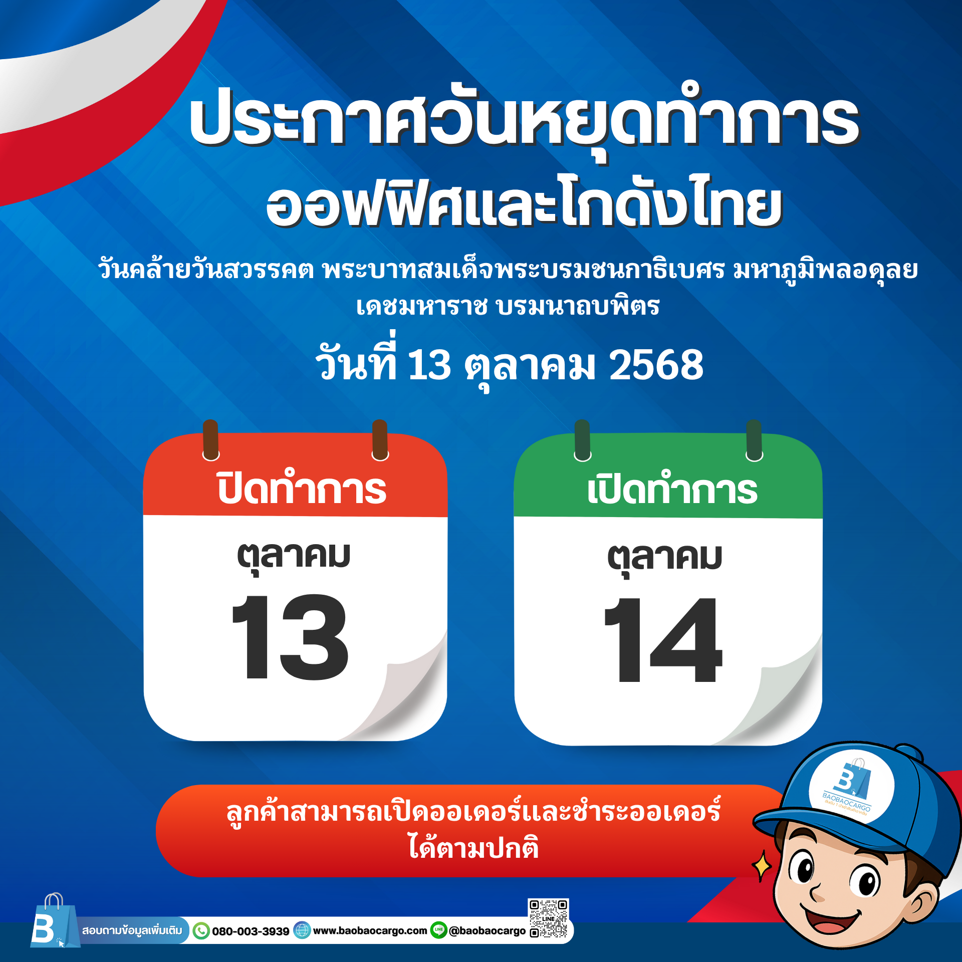 ประกาศกยุดทำการ วันที่ 13 ตุลาคม 2568...