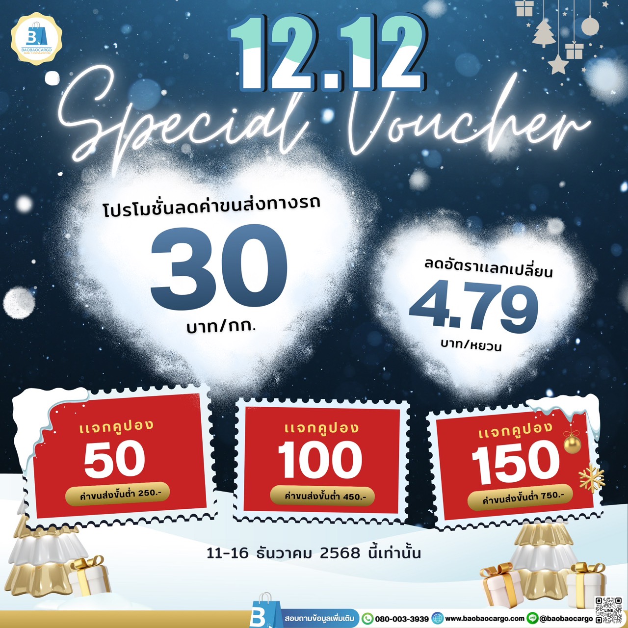 1. สำหรับลูกค้าที่เปิดออเดอร์ และชำระเงิน ภายในวันที่ 11-16 ธ.ค 68 จะได้รับคูปองส่วนลดค่าขนส่ง จีน-ไทย 3 ใบ