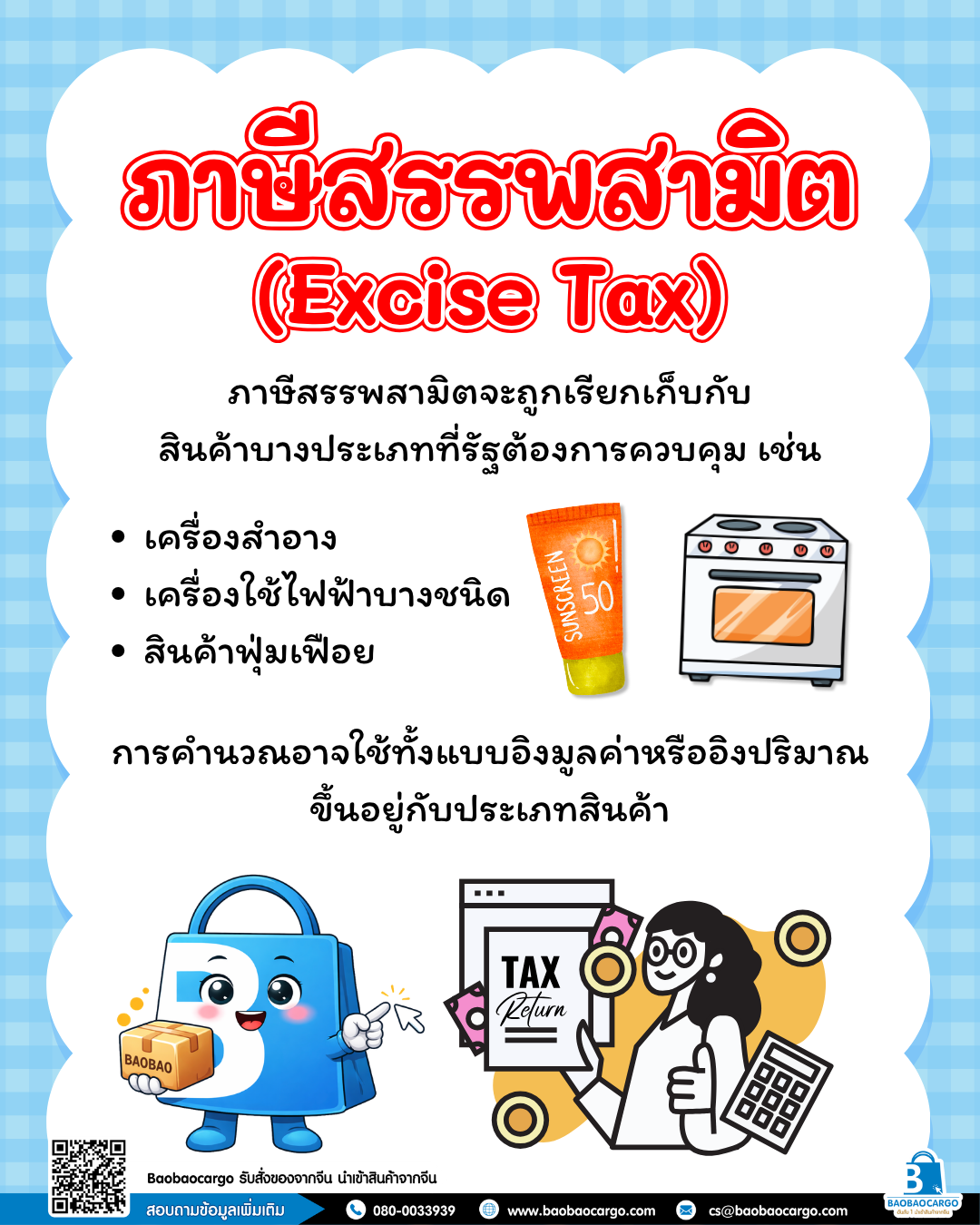 ภาษีสรรพสามิตจะถูกเรียกเก็บกับสินค้าบางประเภทที่รัฐต้องการควบคุม เช่น